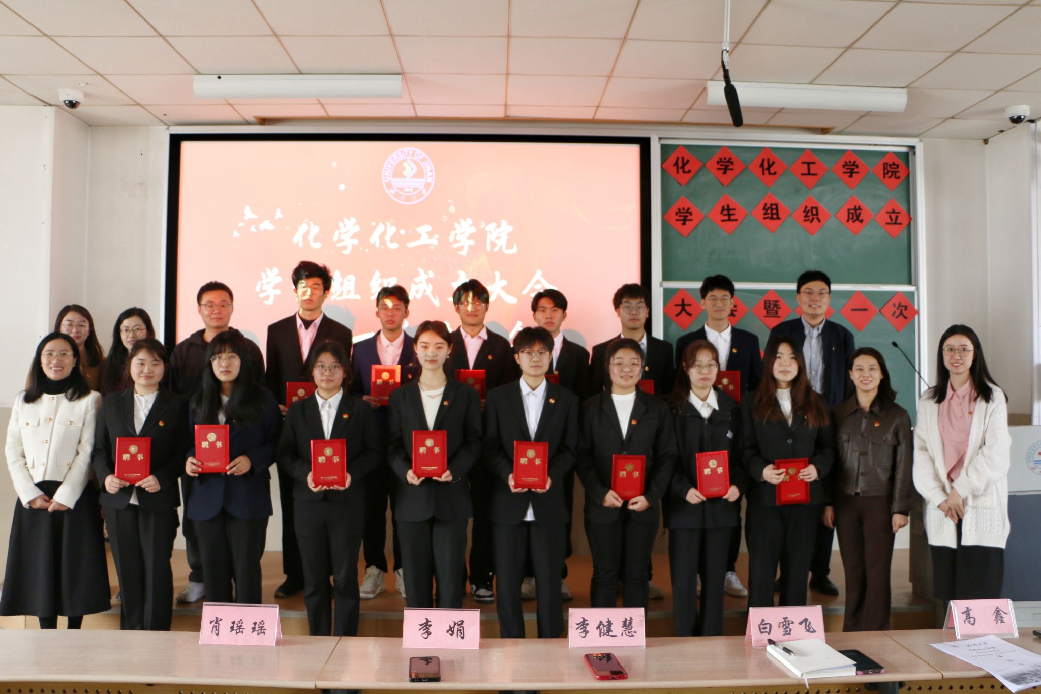 领导老师为第二十五届员工组织主要负责人颁发聘书并合影留念。