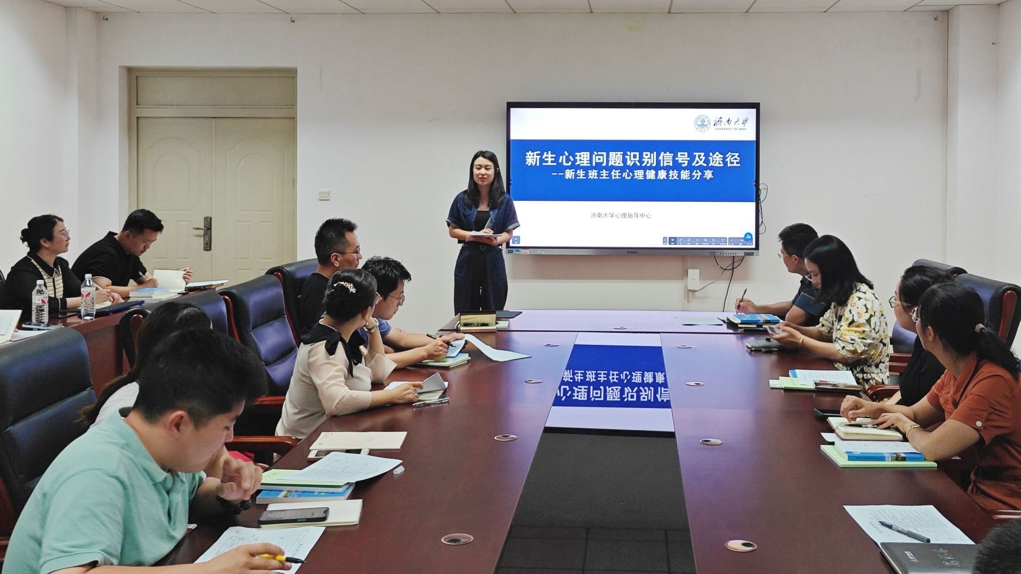 蔺琦琦以《新生心理问题识别信号及途径》为题,向新生班主任分享了实用的心理健康技能,围绕新生心理健康工作要点和新生心理健康工作重要节点细致梳理方法举措,结合精心编制的《班主任心理工作表单》,通过实际工作案例向与会班主任分享了信息收集途径、谈心谈话技巧、异常信号识别等心理健康工作技能。进一步强化了班主任在心理健康工作中的重要作用,提升其心理危机识别能力,帮助新生班主任更好开展心理健康教育工作。