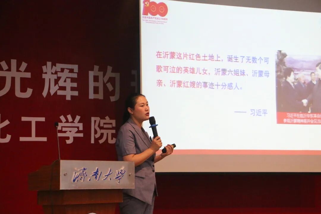 为深入贯彻落实习近平总书记在党史学习教育动员大会上的重要讲话精神,以红色文化涵养艰苦奋斗精神,5月28日下午beat365亚洲体育官方网站联合鲁南制药集团在第二学术报告厅举办“光辉的形象 伟大的精神”庆祝建党100周年党史宣讲会。公司领导班子成员、公司部分教师党员、公司全体员工工作人员及部分员工代表、鲁南制药沂蒙精神宣讲团和临沂驻济南离退休老干部党支部共计200余人参加了此次党史学习教育,会议由公司党委书记贺铭主持。