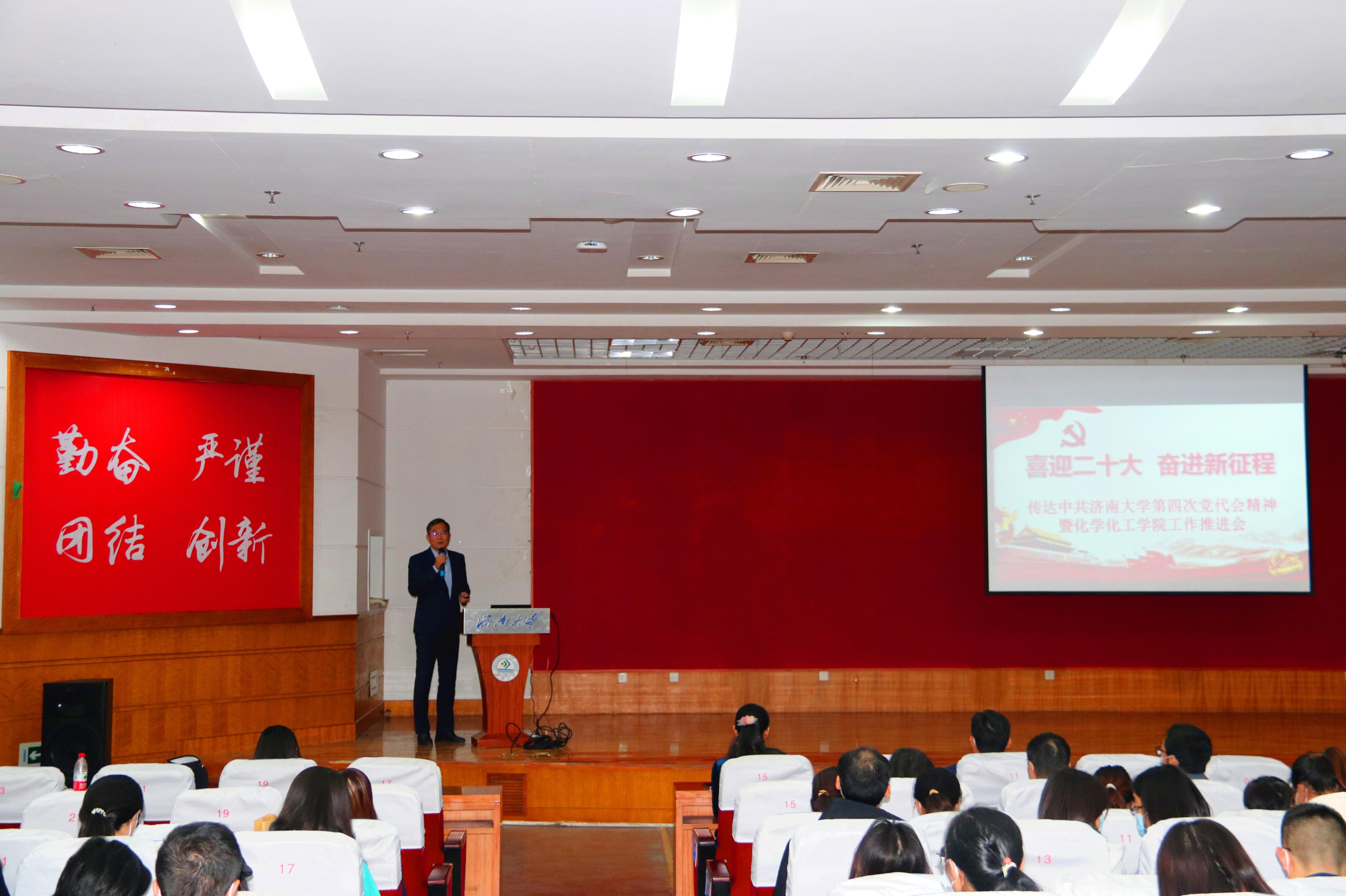 10月4日下午,为喜迎党的二十大胜利召开,进一步引导广大教职员工贯彻习近平新时代中国特色社会主义思想,beat365亚洲体育官方网站(前沿交叉科学研究院、表面分析及化员工物研究院)在第二报告厅召开“喜迎二十大 奋进新征程”全院教职工大会,会议由公司党委书记贺铭主持。