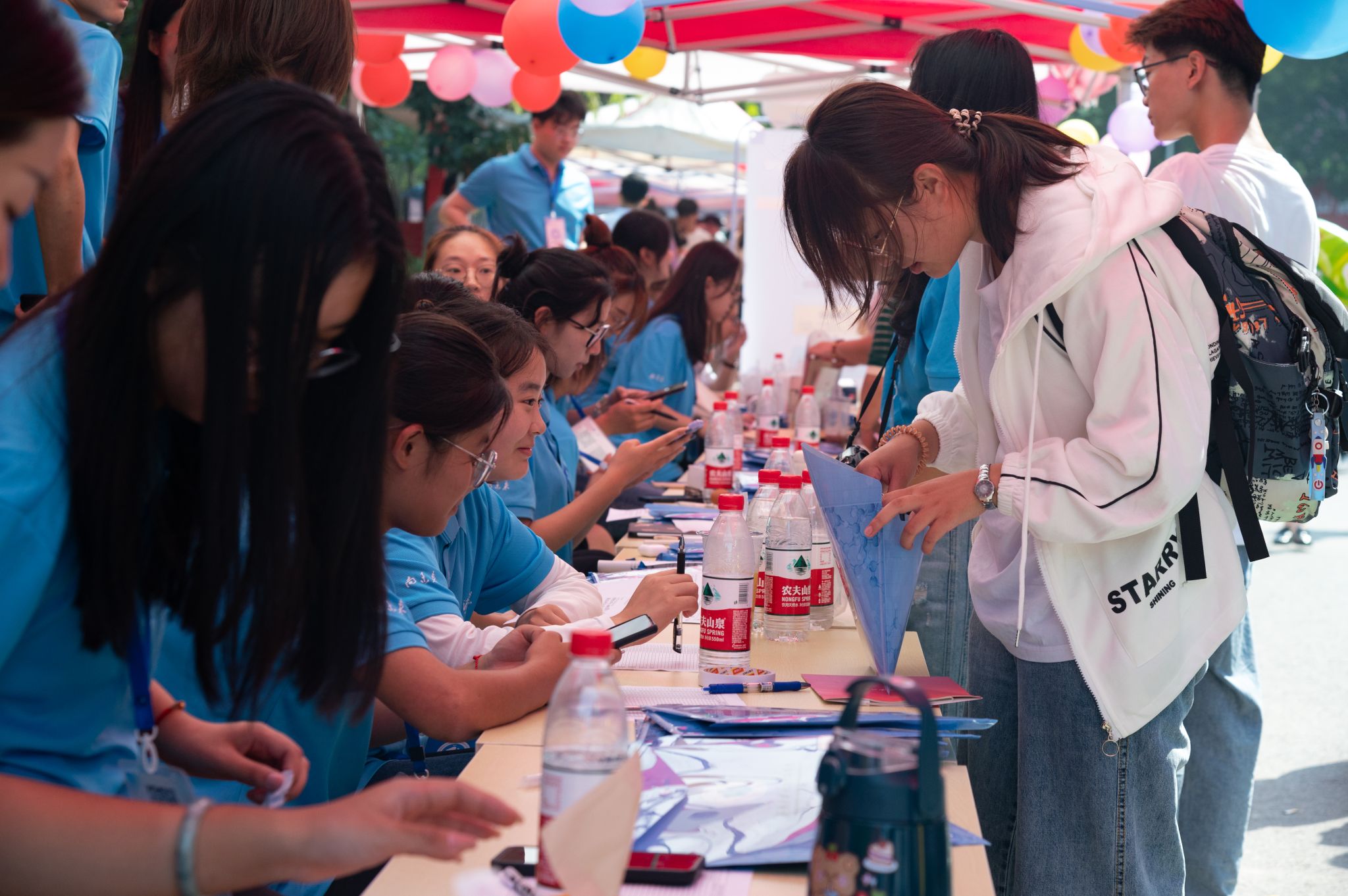 迎新现场,公司新生班助、员工骨干、员工党员及志愿者们积极参与,为新生准备并发放入学大礼包,引导并协助新生顺利完成报到,耐心解答员工及家长的疑问,保证迎新工作有序进行。各式各样的迎新标语牌、打卡相框和巨幅签名墙吸引了众多新生前来打卡拍照,记录下这一美好的瞬间。
