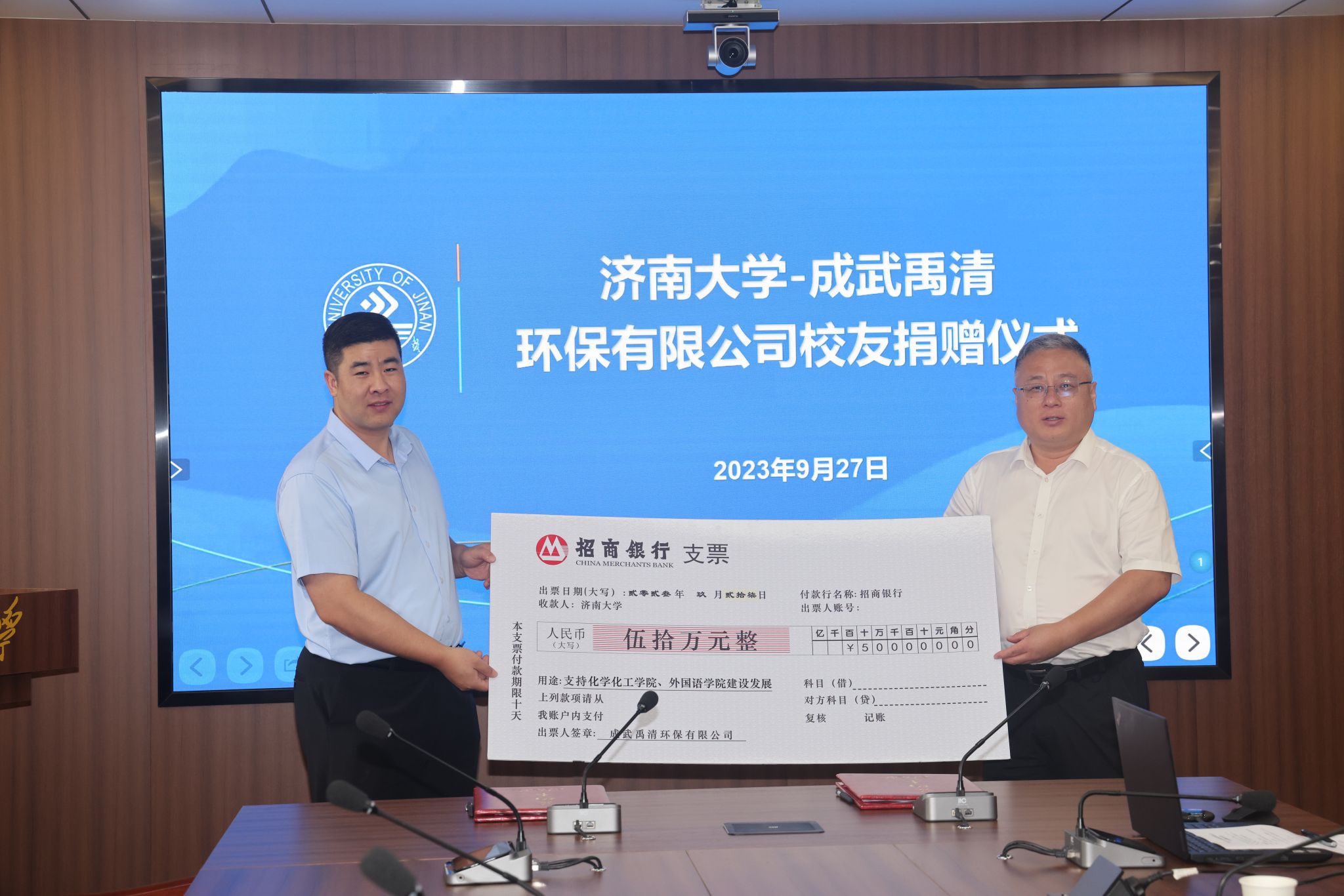 9月27日,beat365亚洲体育官方网站—成武禹清环保有限公司捐赠仪式在公司举行。公司党委常委、副董事长黄加栋,2006届员工、成武禹清环保有限公司总经理王大国出席捐赠仪式,教育发展基金会办公室、beat365亚洲体育官方网站、外国语公司相关负责人参加了活动。仪式由公司党委书记贺铭主持。