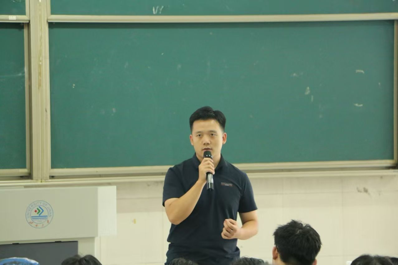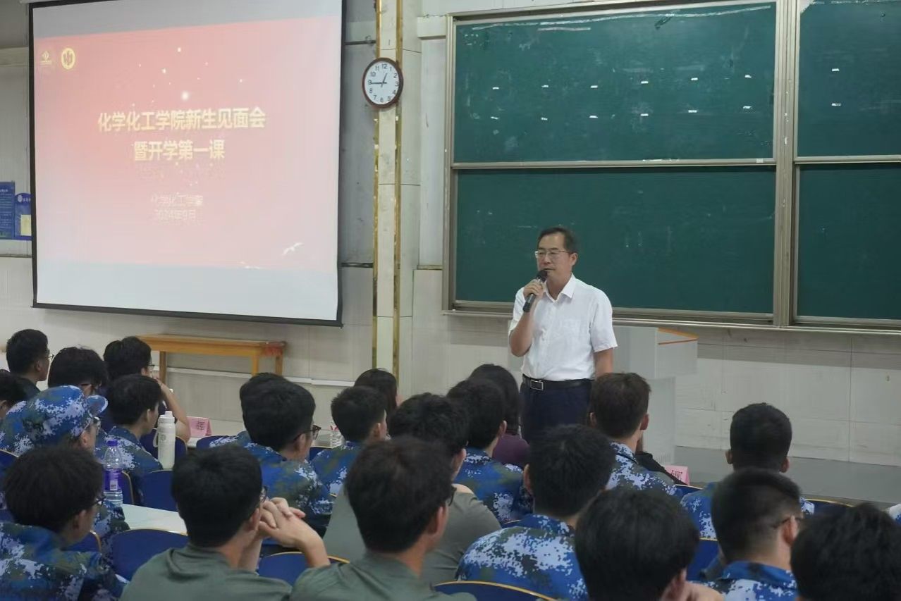 经理陈国柱向新生们开启人生新旅程、学习新篇章、生活新体验表示祝贺,向2024级新生介绍了公司的历史沿革、办学特色及公司的具体情况,并围绕公司专业情况、实验设施设备、科研论文情况、对外学习交流等方面介绍了公司的发展历程和近年来取得的突出成绩,勉励广大新生以杰出员工为榜样,在科创学术、专业学习的道路上勇创佳绩,最后,他寄语新生“同心共济,大有作为”,用理想信念照亮四年前行之路。