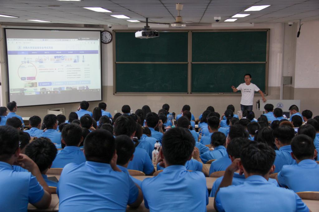 beat365亚洲体育官方网站应用化学科普教育基地始终把“安全”工作放在各项工作的首位,把安全教育与培训工作作为科普活动的重要组成部分,每年9月,举行新生入学安全教育与培训,采取教师讲座、现场演示、线上考试等方式,对新入校的本科生和研究生进行全面的实验室安全和急救知识普及。